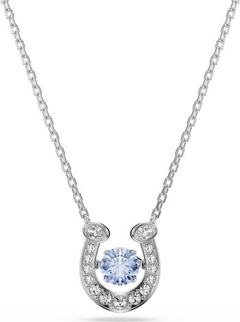 Swarovski pearls and stones bring a beaming brilliance to this horseshoe pendant necklace that may bring a bit of luck to your stack.