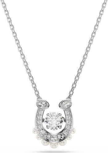 Swarovski pearls and stones bring a beaming brilliance to this horseshoe pendant necklace that may bring a bit of luck to your stack.