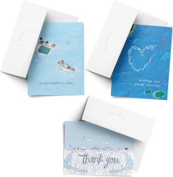 Sympathy Greeting Card Pack Sets (3 ct, Assorted) Im Just a Phone Call Away, Speedy Recovery Boat, Salty Thanks