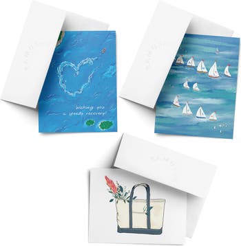 Sympathy Greeting Card Pack Sets (3 ct, Assorted) Speedy Recovery Boat, Regatta Thanks, Tote Flowers
