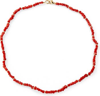 Vibrant and expressive, this coral bead necklace brings warmth and texture to a refined silhouette. Crafted with richly hued coral beads and accented by 18K yellow gold roundels, it offers a striking balance of color and polish. Designed to sit elegantly along the neckline, it delivers a bold yet effortless statement that transitions seamlessly from day to evening.
