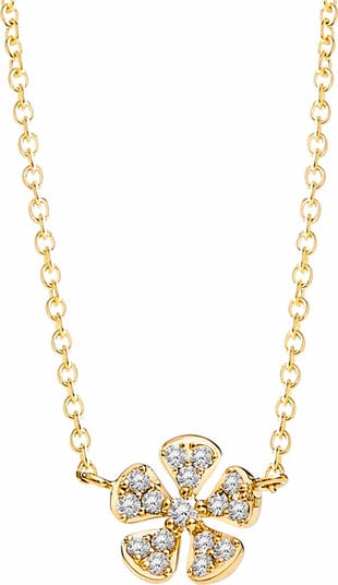 Delicate and luminous, the Flower Necklace captures the beauty of a bloom in a refined, modern form. Crafted in 18K yellow gold, shimmering diamonds form a soft floral silhouette that radiates subtle brilliance. Designed to sit gracefully along the neckline, it offers an elegant touch of light, perfect for everyday wear or layered styling.