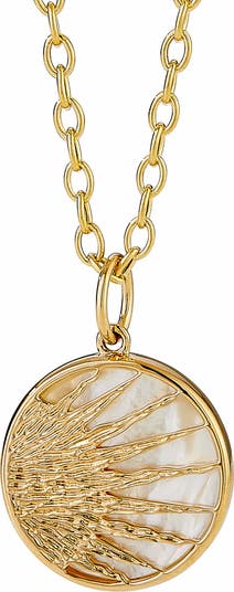Radiant and quietly expressive, the Rising Sun Pendant captures the warmth of first light in a refined, sculptural form. Crafted in 18K yellow gold, a luminous mother of pearl center glows with soft iridescence, framed by a rising sun motif that evokes renewal and optimism. Elegant yet symbolic, it is designed to be worn as a personal emblem or layered with ease.