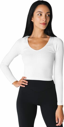 Our Synergy V Long Sleeve is designed for the ultimate comfort and style while offering a sporty addition to your wardrobe. This ribbed top offers medium compression to flatter your figure.