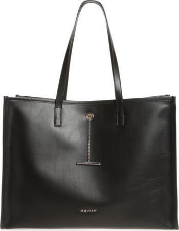 Logo-engraved bar hardware brings this season's signature look—and a sleek pendant-style toggle closure—to a spacious tote shaped from ultrasmooth calfskin.