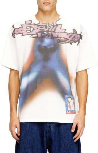 A simple brand flag marks the chest of this T-shirt cut from soft organic cotton in an oversized fit with plenty of room for showing off the layered digital graphic prints.