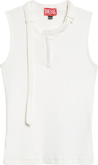 A zippered neckline fitted with a long strap artfully laced through belt-style loops emphasizes the label's glam-grunge edge in this ribbed tank featured on the spring '26 runway.