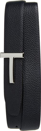 A T-shaped buckle brings signature Tom Ford panache to this grained calfskin-leather belt featuring a reversible design for maximum versatility.