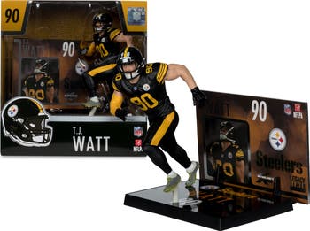 T.J. Watt (Pittsburgh Steelers) NFL 7" Figure McFarlane. T.J. Watt is a linebacker for the Pittsburgh Steelers, known for his pass-rushing prowess. Drafted in 2017, he has over 100 sacks and multiple Pro Bowl selections. In 2024, he led the NFL with six forced fumbles and earned the Steelers' MVP award for the fifth time. Officially Licensed by the NFL and NFLPA.