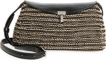 Woven sheepskin leather stands out against the smooth, curved flap of an Italian-crafted clutch quietly branded with a T-shaped clasp. A removable shoulder strap brings utter versatility to this scaled-down style.