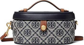 Logo-jacquard canvas and smooth leather provide textural interplay on a spacious train case perfect for stylishly storing your essential cosmetics while on the go. An optional crossbody strap provides hands-free carry.