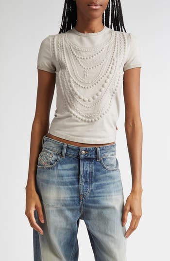 True to form, the Italian label defies convention with this shrunken crewneck T-shirt heavily accessorized with embossed chains, mimicking the overloaded look of lots and lots of chunky necklaces. Cut from technical stretch jersey, this T-shirt is specially treated with a cold pigment dye, giving it a washed-out, broken-in look from the very first wear.