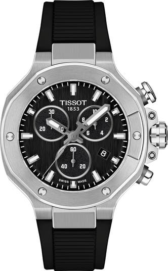 Inspired by the fast-paced action of motorcycle racing, this Swiss chronograph watch on a sporty silicone strap is an eminently stylish accessory.
