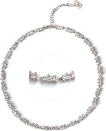 Elegant choker with an innovative twist on the classic tennis design, showcasing top-tier 5A cubic zirconia in an irregular pattern. Wear it solo or layered. A versatile addition to any outfit.