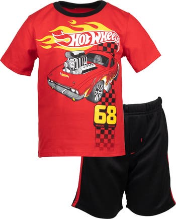 Get ready to race in this fiery Hot Wheels tee and shorts set built for little thrill seekers! The bold red tee features a high-powered muscle car, blazing flames, and signature Hot Wheels graphics—bringing instant track-day excitement. Paired with breathable black mesh shorts and sporty contrast taping, this set blends comfort with high-speed style. Made for all-day play and nonstop fun, it’s a winning look from start to finish!