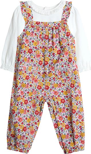 Keep baby classic and comfortable in this layer-loving long-sleeve T-shirt and floral corduroy overalls set cut from pure cotton.