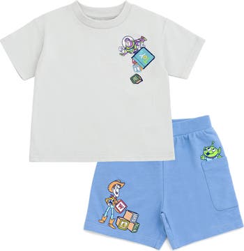 Get ready for an epic Disney adventure in this cool and comfy Disney outfit! This stylish short sleeve shirt and shorts set features vibrant Disney artwork your little one will love to wear with cute embroidery detailing! Choose from colorful designs of Woody, Buzz Lightyear and the little green Aliens from Toy Story playing with blocks; Mickey Mouse, Donald Duck, and Pluto playing basketball; or Winnie the Pooh and Piglet eating honey from the jar. Made of a soft material that keeps your child comfortable, this fashionable Disney 2-piece clothing set is perfect for all day fun and play!