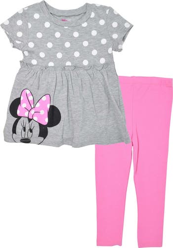 Dress your little one in adorable Disney style with this Minnie Mouse t-shirt and leggings outfit set. Available in sizes for infants to big kids, this cute ensemble features a graphic tee with everyone's favorite mouse and coordinating leggings for a complete look. Perfect for a day at the park or playdates with friends, this outfit is sure to bring smiles and comfort to your child. Get your hands on this charming set today for a magical addition to your child's wardrobe.
