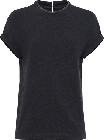 Brunello Cucinelli T-shirt with Precious Faux Layering, Alternate, color, Anthracite