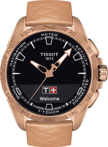 T-Touch Connect Solar Smart Leather Strap Watch, 47.5mm