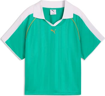 Jacquard stripes add to the sporty style of this relaxed-fit jersey featuring the brand's classic cat logo embroidered at the chest.