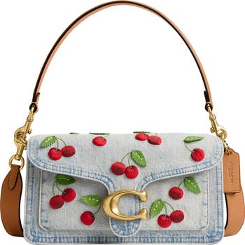 Serve classic Coach style and a side of sweetness with this cherry-embroidered denim shoulder bag featuring a multitude of pockets and a pair of removable straps for on-the-go convenience.