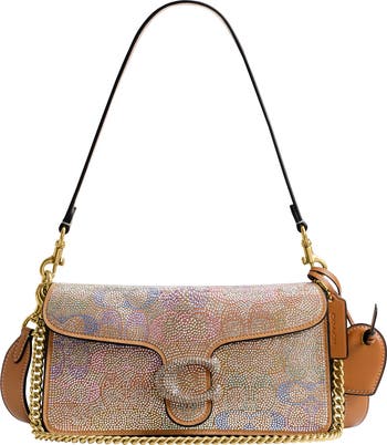 Colorful crystals create the signature logo print of this iconic shoulder bag featuring a divided interior for easy organization and a trio of removable straps for versatile styling options.