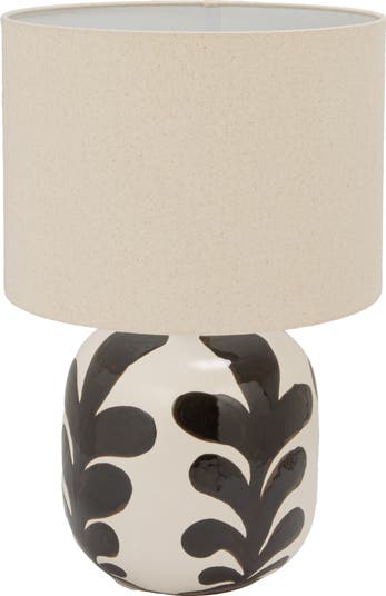 Add visual intrigue and ambient light with this Round Stoneware Table Lamp, featuring a black and cream abstract design that brings modern artistry to its organic form. Topped with a soft linen shade, it balances boldness with subtlety, making it ideal for Boho, Global, Transitional, French Country, or Farmhouse interiors. Use it to illuminate side tables, workspaces, or cozy corners with sculptural charm. Made of durable stoneware and breathable linen, it offers both style and substance. Measures 15.0 inches in diameter and 17.25 inches in height. It is a simple way to make a space feel special.
