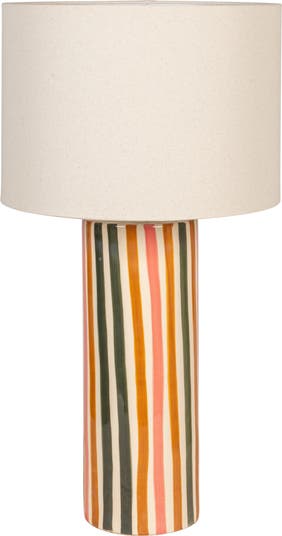 Add a playful yet sophisticated touch to your decor with the Multicolor Stripe Stoneware Table Lamp. Featuring a tall, cylindrical stoneware base adorned with bold vertical stripes in vibrant hues, this lamp is both a functional light source and an artistic statement. The neutral linen shade balances the colorful design, offering soft, diffused lighting for a cozy ambiance. Perfect for brightening bedside tables, living room consoles, or office desks, this lamp effortlessly combines modern style with practical functionality.