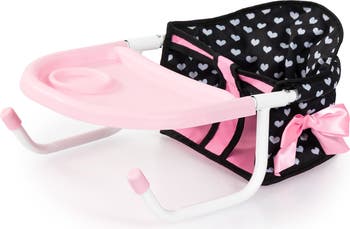 BAYER DESIGN DOLLS: TABLE SEAT - BLACK, PINK, HEARTS - The modern table seat for dolls has a beautiful design with a great color combination, engaging and keeping your little ones excited to start playtime with their little ones. The able seat provides amble space for the dolls and stuffies up to 18 inches/46 cm. The integrated feeding tray makes it easy to feed the doll or stuffie. The table seat can be easily folded and thus stored in a space-saving and convenient way for the next playtime. Due to its handy format, the doll and stuffie seat can easily be taken everywhere, so that the favorite doll and stuffie always has the right place next to the doll and stuffie's parents. The seat is a great doll/stuffie accessory encouraging them to feed their littles ones and develop their roleplay and caretaking skills for your little ones development. Designed for dolls up 18" (46cm) * Doll not included. Suitable for boys and girls ages 3 and up.