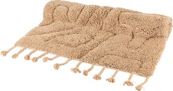 - An artisanal creation, this rug showcases a symphony of textures, complete with a high pile and playful braided tassels