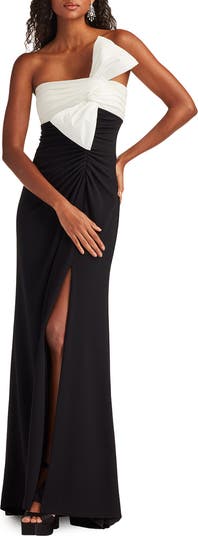 Taffeta Bow One-Shoulder Gown