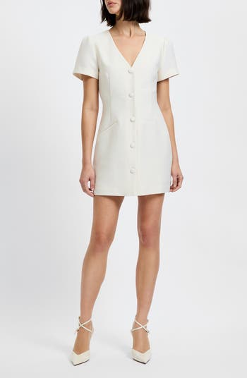 Crisp seams bring sharp polish to this suit-inspired minidress finished with decorative front buttons and framed by gently structured sleeves.