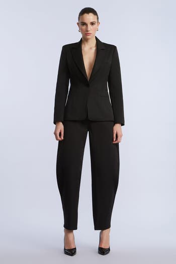Taffeta twill puddle pants with a sculptural, curved-leg silhouette and sharp seaming through the thigh. Designed to sit high at the waist and fall into a clean hem that kisses the floor. Style them with a crisp button-down for your 9-to-5, then swap in heels and a bare back for late-night plotting.