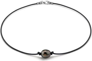A single black Tahitian baroque pearl on a leather strand offers sculptural elegance with a modern, minimalist edge.