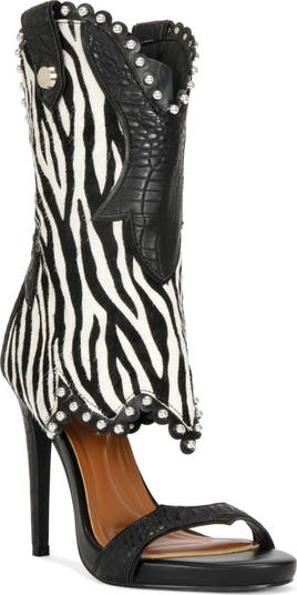 Unmistakable Western style is the defining trait of this stiletto sandal embellished with polished studs and genuine calf-hair panels.