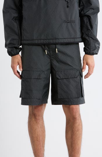 Tahoe Check Print Nylon Blend Drawstring Cargo Shorts