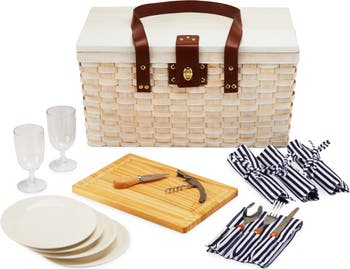 TWINE Tahoe Picnic Basket Set for Four in Cream, Main, color, Cream