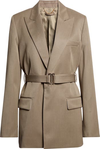 Tailored Belted Wool Blend Twill Jacket