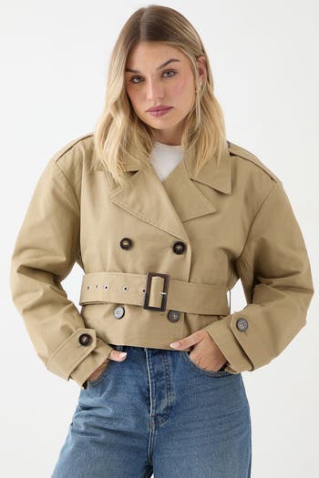 Make a bold fashion statement with this tailored cropped trench coat from MissPap. The shortened length creates a fresh, youthful silhouette that pairs perfectly with high-waisted jeans or pants.