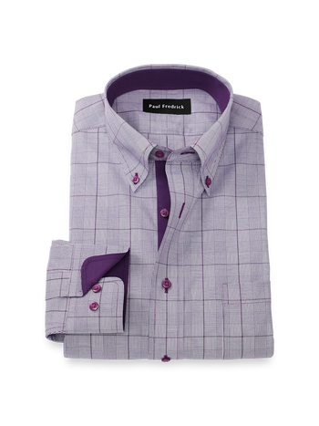 Tailored Fit Comfort Stretch Non-iron Glen Plaid Dress Shirt With Contrast Trim
