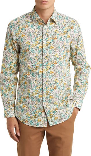An intricate floral print freshens an Italian-crafted dress shirt made from breathable cotton to keep you looking sharp day and night.