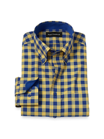 Tailored Fit Non-Iron Cotton Gingham Dress Shirt with Contrast Trim