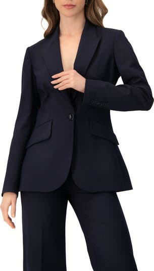 Tailored blazer featuring a single front button and pockets, perfect for a polished look.