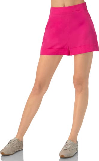 Sleek tailored shorts with wide hem a side closure and no pockets.