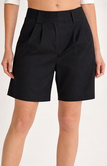 The trouser shorts are tailored with a relaxed fit, featuring front pleats and structured belt loops for a polished look. Finished with a hook-and-eye zip closure, side pockets, and a faux welt pocket at the back, the silhouette is clean, modern, and effortlessly refined.