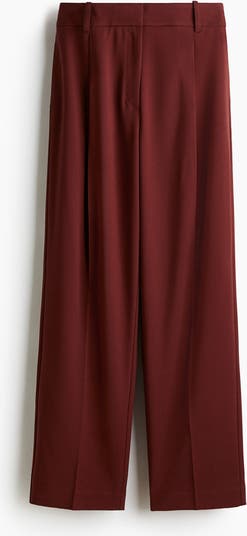 Loose-fit, tailored trousers in woven fabric featuring a high waist with a zip fly and a concealed button and hook-and-bar fasteners. Discreet side pockets, fake welt pockets at the back and tapered legs with pleats at the front and creases down the front and back.