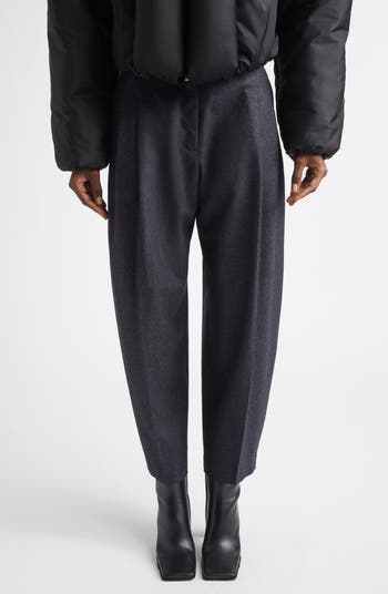 The maison leans into its legacy of artisan tailoring with these Italian-crafted wool trousers featuring a tapered-leg silhouette with sharp pleats along the thighs.