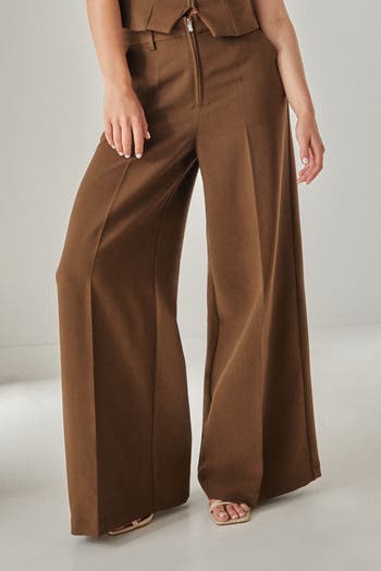 These Nasty Gal tailored zip front pants combine modern design with timeless sophistication. The distinctive front zip closure adds an edgy twist to the classic wide-leg silhouette, while the high-waisted cut creates a lengthening effect that complements all body types.