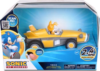 SONIC THE HEDGEHOG: TEAM SONIC RACING - TAILS THE FOX - Miles “Tails” Prower joined the Sonic the Hedgehog universe in 1992 when he appeared in Sonic the Hedgehog 2. The famous two-tailed fox has since appeared in over 90 different video games! Tails’ iconic Whirlwind Sport race car is a powerful and agile open-wheeled racing machine and was featured in the popular Team Sonic Racing game. This full function detailed scale remote controlled replica features grippy rubber tires and powerful working LED headlights, for a real Sonic driving experience! It also features a powerful Turbo Boost and a 2.4GHz frequency. Hit the turbo, let go, and watch tails zoom! Sonic is a video game legend and features some of the most recognizable characters. Tails will be the ultimate competitor for NKOK’s Team Sonic Racing Sonic and Shadow RCs! (each sold separately). OFFICIALLY LICENSED: Team Sonic Racing’s Tails RC is part of the NKOK RC collection of officially licensed Sega remote control products. OVERVIEW: (1) RC vehicle (1) controller. Battery Powered (batteries not included). Suitable for ages 6 and up. Measure approx. 3.25" H x 4.5" W x 8.75" L. Transmits up to 150 feet. 2.46 GHz.